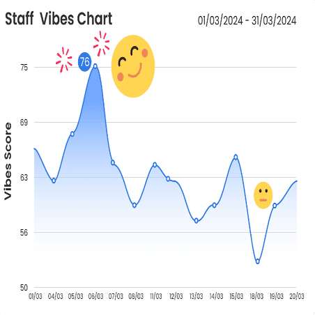 そして、マネージャーは毎日・毎月のスタッフの満足度を確認することができます。これは、会社全体の業務が順調に進んでいるかどうかを把握するのに役立ちます。