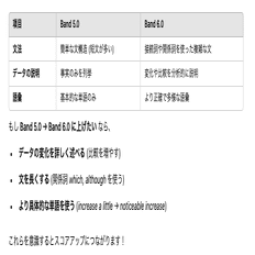 一見すると、5.0 と 6.0 は同じようですが、よく見比べると 5.0 の方は、文章が短く、単純な文法構造が多く、データを単純に羅列しているだけで、基本的な単語が多いですが、6.0 は 関係詞や副詞を使った接続が増え、比較を意識した表現が多く、語彙の幅が広く、具体的な表現があります。