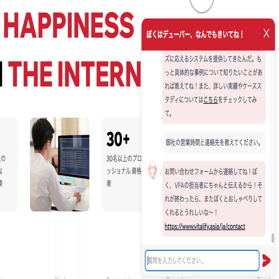 そこはまだよく知らないので、社員さんに聞いて勉強しておくね!また、以下のフォームから直接お問い合わせすることもできるよ: https://www.vitalify.asia/ja/contact