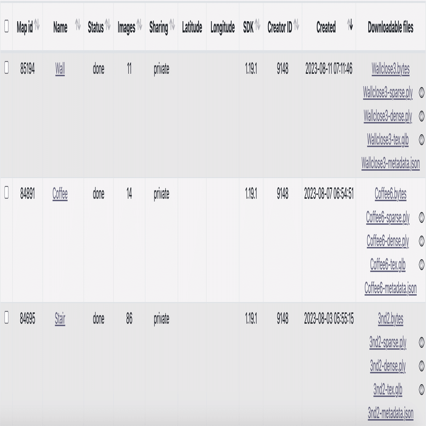 スキャン後、次の内容を含むマップ データが Immersal Developer Portal に表示されます。