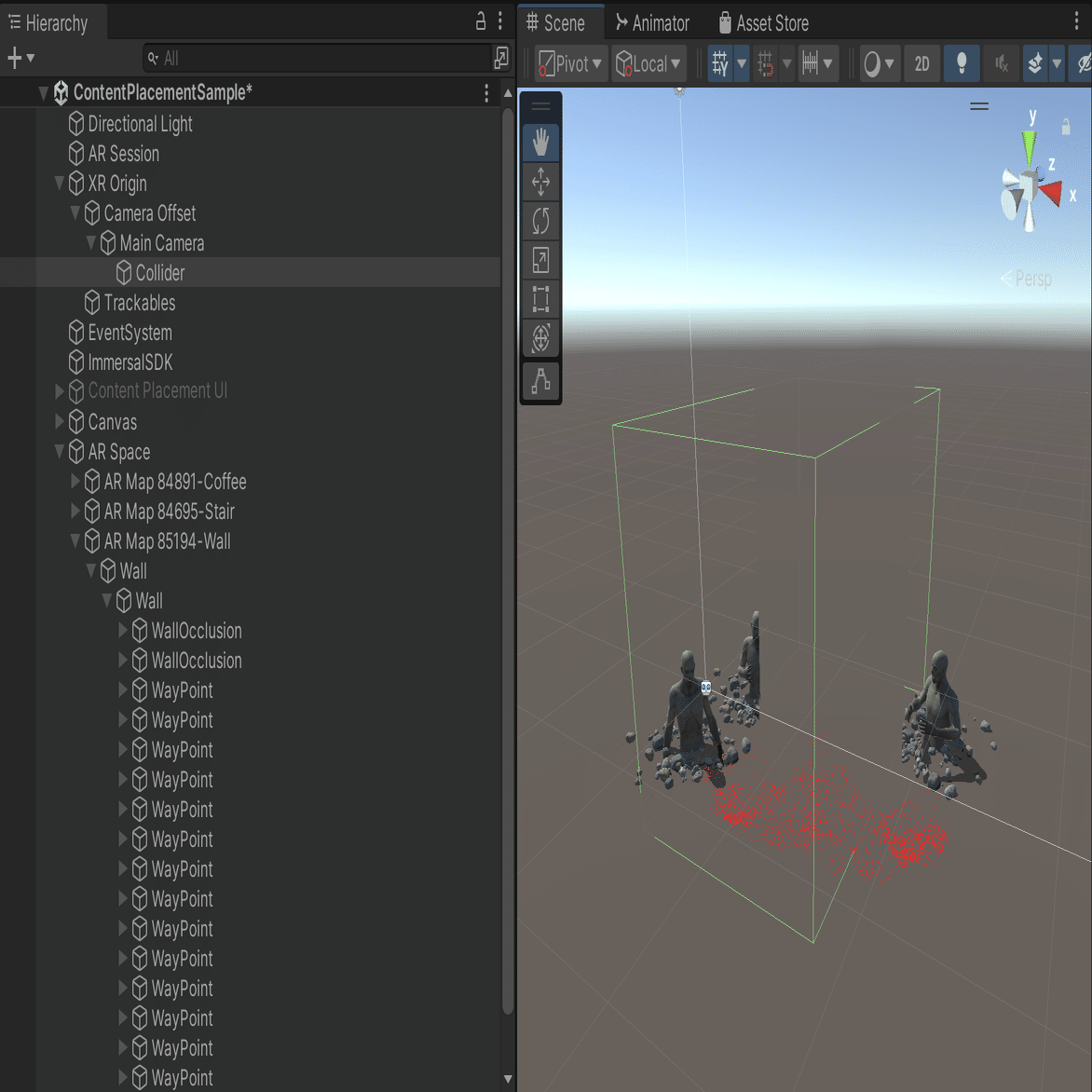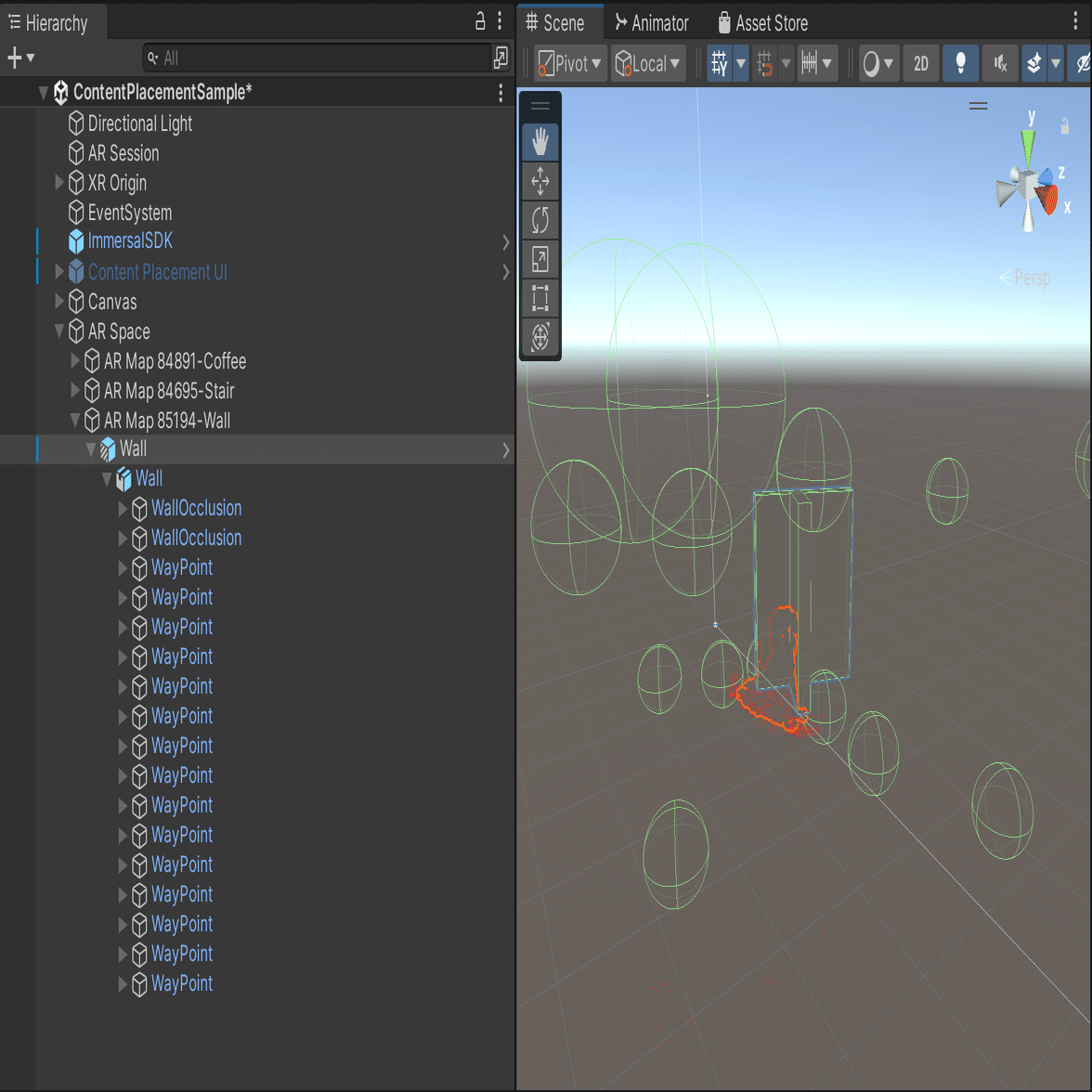 FBXマップは実際のアプリ内では登場しませんが、開発者が現実世界とマッピングするためにオクルージョン マスクを配置する場所を知るのに役立ちます。 希望の位置にウェイポイント(=ゾンビの出現場所)を作成して設定します。