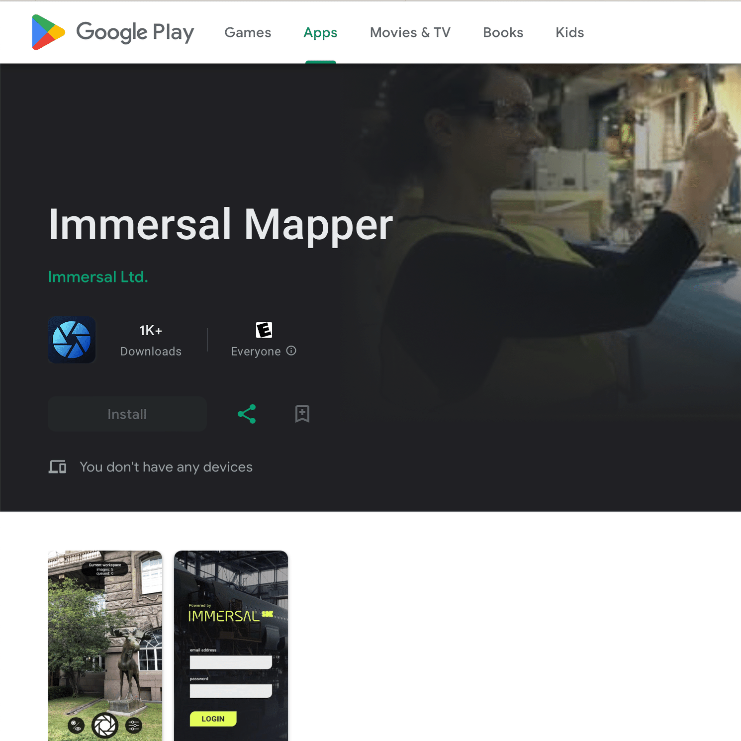 AndroiまたはiOSのストアからImmersial Mapper アプリをダウンロードし、AR コンテンツ(今回の企画ではゾンビ達)を配置したい領域をスキャンします。