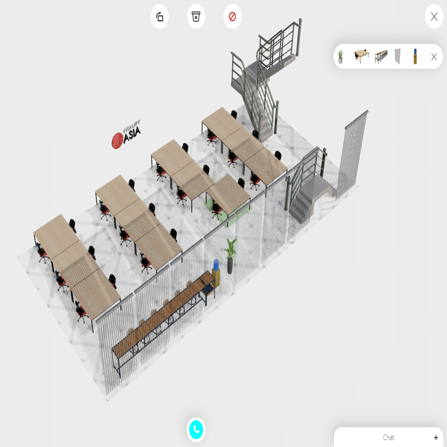 オープンプランのレイアウトを好む場合でも、より細分化されたワークスペースを好む場合でも、当社のプラットフォームを使用すると、机、椅子、その他の要素を簡単に移動できます。